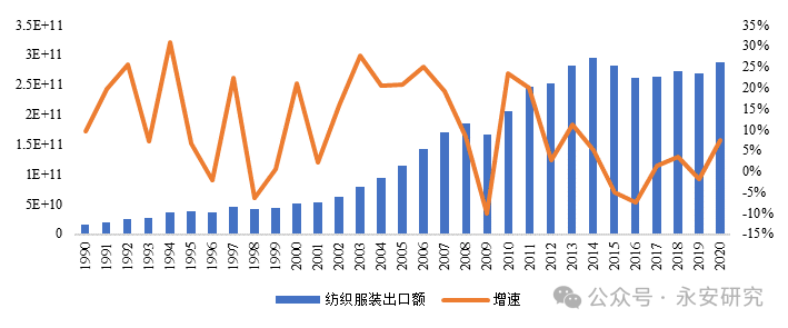 资料来源:UN Comtrade,永安期货研究中心图3:全球纺织品服装产业转移