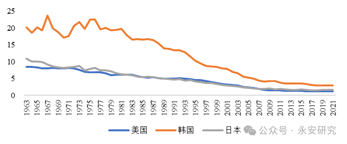 资料来源:UN Comtrade,永安期货研究中心作为周边区域,韩国、中国台湾和中国香港经济发展程度、劳动力成本优势明显,逐渐成为了日本纺织业的转移地。这些地区凭借自身优势,通过引入日本纺织产能,实现了相关产业的快速发展。