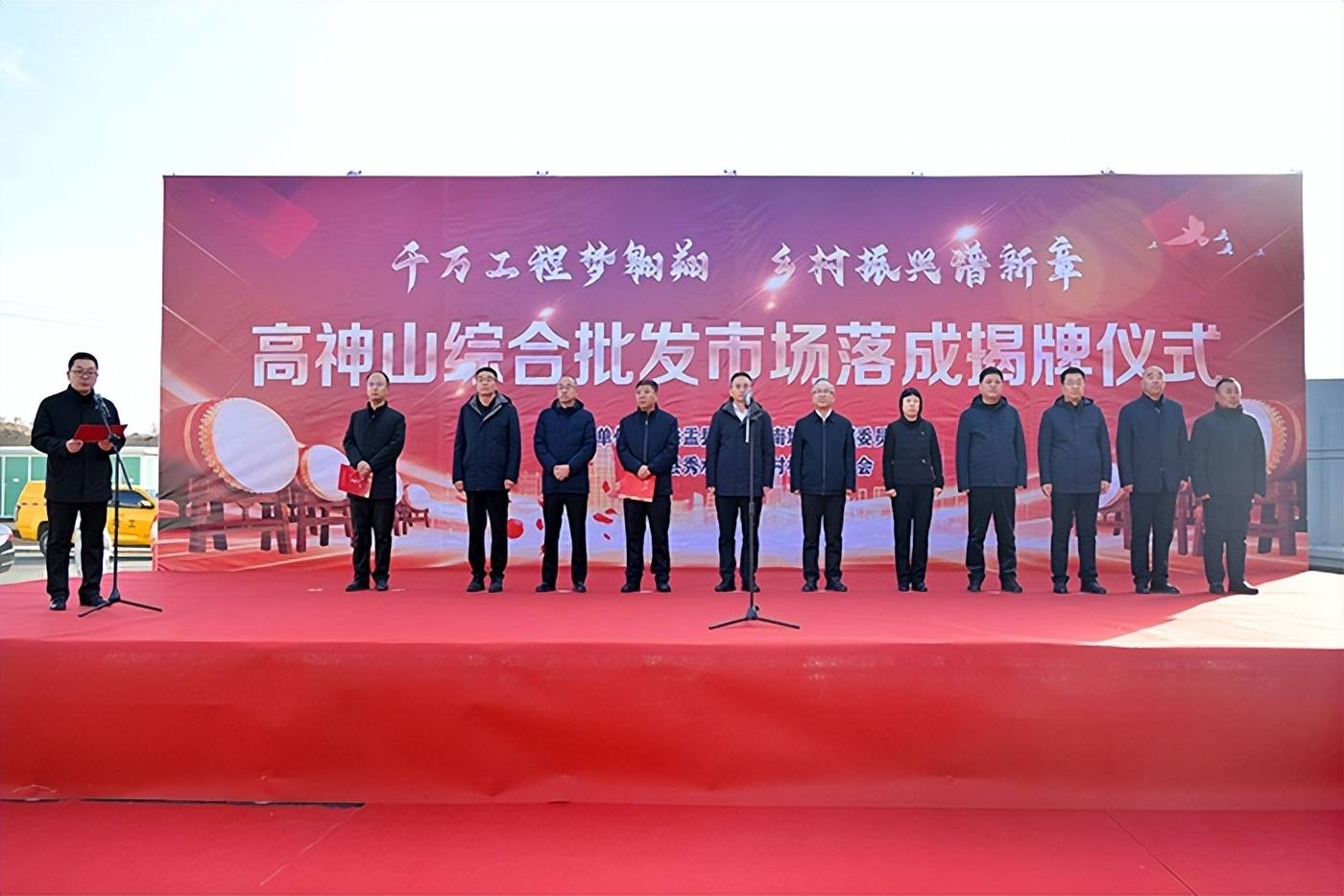 仪式现场,高尚明代表县委、县政府对高神山综合批发市场落成揭牌表示热烈祝贺,向为市场建设作出贡献、给予支持的有关单位及镇村干部群众、广大商户表示衷心的感谢。他指出,高神山综合批发市场是县城城北区域业态丰富、功能配套完善、服务体系健全的农副产品流通体系标杆项目。他强调,要抓好商户入摊经营,加大对外宣传和招商力度,把市场做大做优做强,打造城北地区乃至全县农副产品“供应基地”。要秉承“便民、利民、惠民”的经营理念,做好精细化管理,着力保障食品安全,为推动市场繁荣发展贡献力量。他希望,秀水镇镇村全体干部群众要凝心聚力,继续在发展壮大集体经济、服务乡村全面振兴上探索新的路径、谋求新的突破。