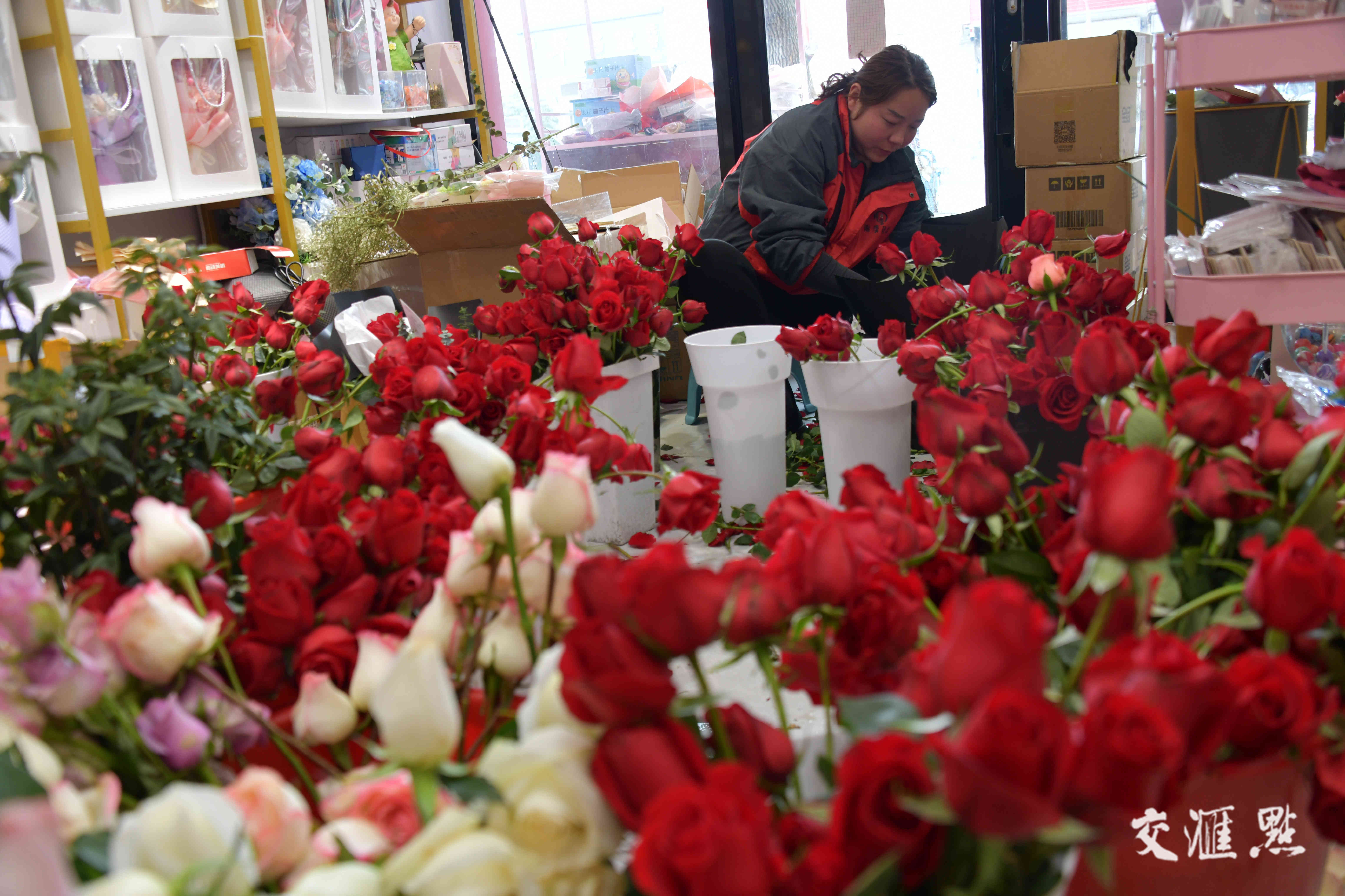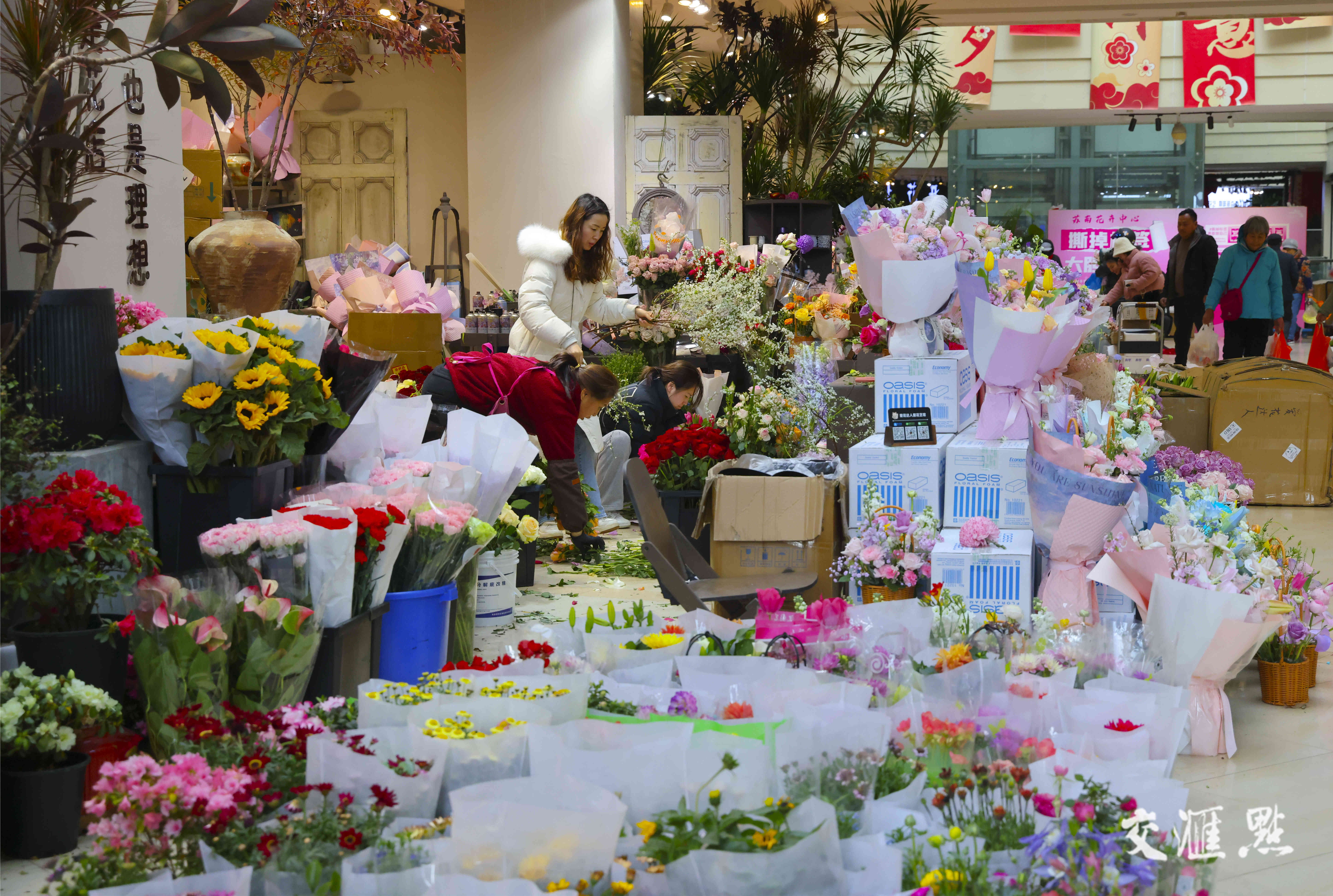 3月7日,淮安市洪泽区高良涧街道花店市场,工作人员正在包装花卉。“三八”妇女节将至,当地鲜花市场持续升温,玫瑰、康乃馨、郁金香、向日葵等鲜花备受青睐,引领“她经济”升温。崔德圣 摄 视觉江苏网供图
