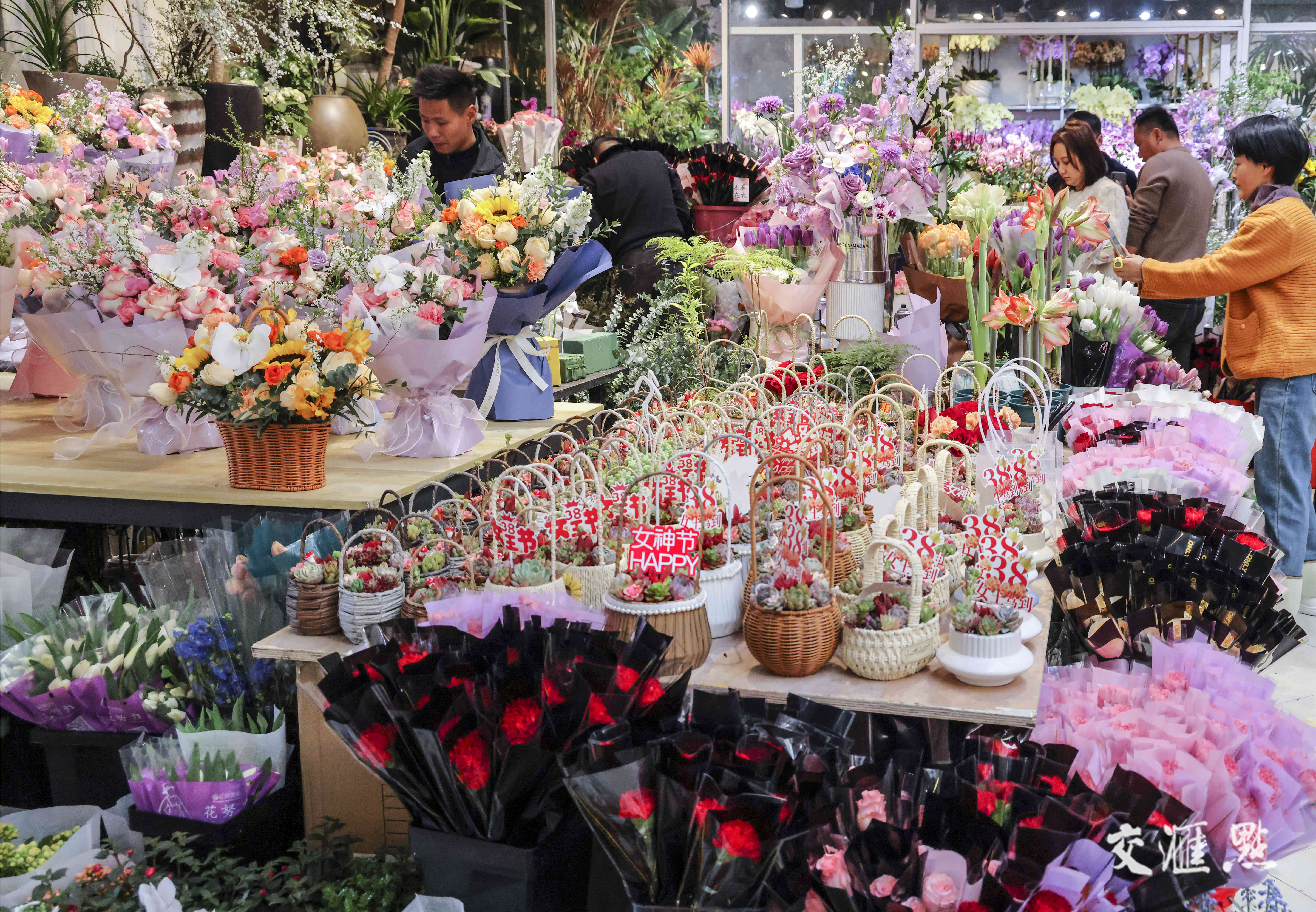 3月6日,“三八”妇女节将至之时,苏州市苏南花卉中心,鲜花争奇斗艳,市场供应充足,前来选购的市民络绎不绝。阙明芬 摄 视觉江苏网供图