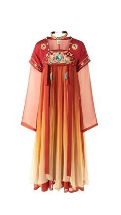 除瑶见神鹿,此系列还有大乔沧海之矅、嫦娥露花倒影、武则天倪克斯神谕、蔡文姬天籁弦音、王昭君凤凰于飞等。“大乔沧海之矅”是一款国风裙,将汉服的齐胸襦裙与王者荣耀里大乔的造型相结合,整体很“锦鲤”,鱼尾一样的飘片、蓝宝石刺绣和胸前的细节都很精巧,附送一款项链,宛若真实的大乔。“嫦娥露花倒影”是一款非常淡雅的裙装,精致的刺绣,飘逸的裙摆,柔和的渐变色,让这款设计“仙气”逼人。两件套装的“蔡文姬天籁弦音”,采用双面补子袄,配有精美的刺绣,下裙的黄绿色渐变更是充满少女的活力,让人不禁联想到穿越战场的天才美少女蔡文姬。裙摆点缀着音符花朵的刺绣,仿佛听见“回血”的音乐。