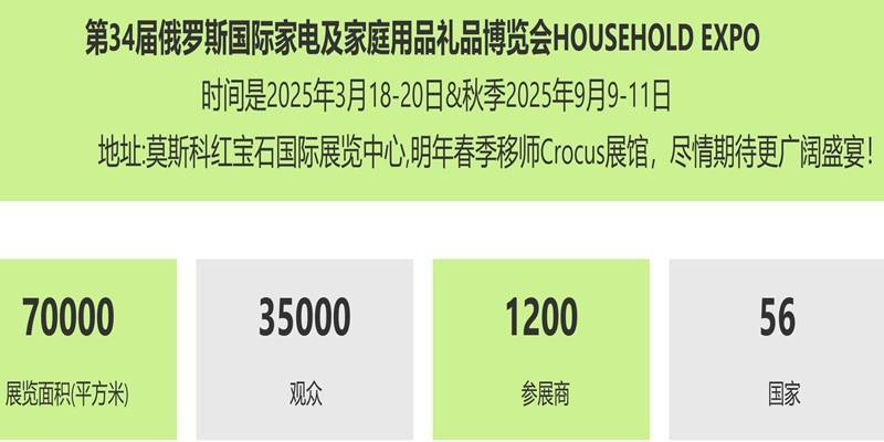 俄罗斯莫斯科家庭用品及家用电器展览会(HouseHold)是俄罗斯Z大规模的家庭用品及家用电器展览会。由MOKKA Expo集团举办,得到俄罗斯联邦政府和工商联合会的大力支持。