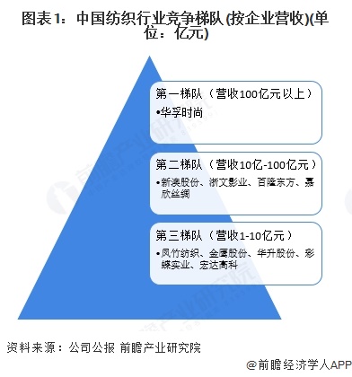 1、中国纺织行业整体竞争梯队