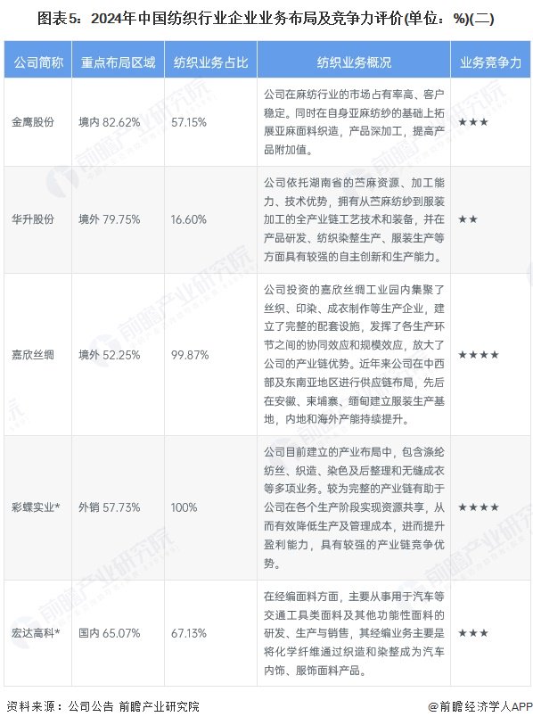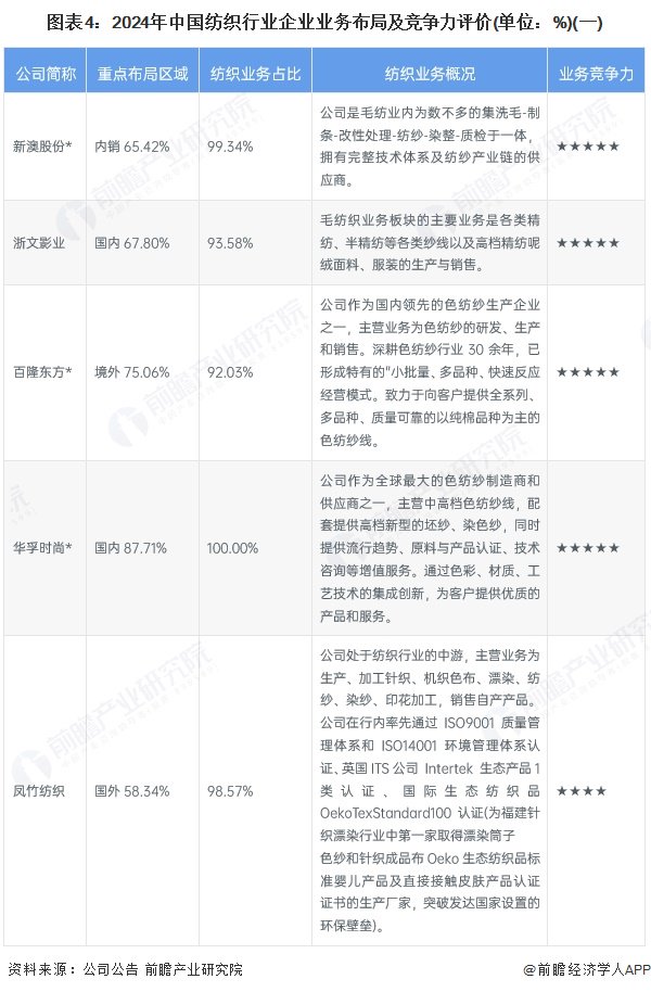 4、中国纺织行业企业布局及竞争力评价