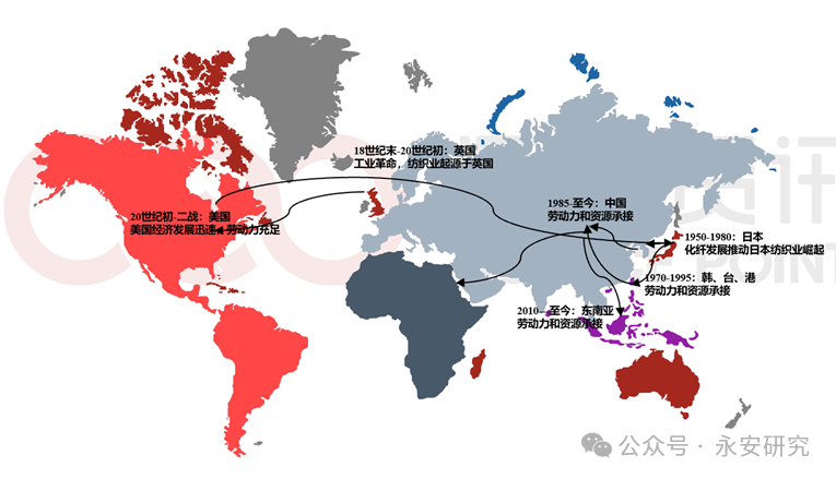 资料来源:UN Comtrade,永安期货研究中心图3:全球纺织品服装产业转移