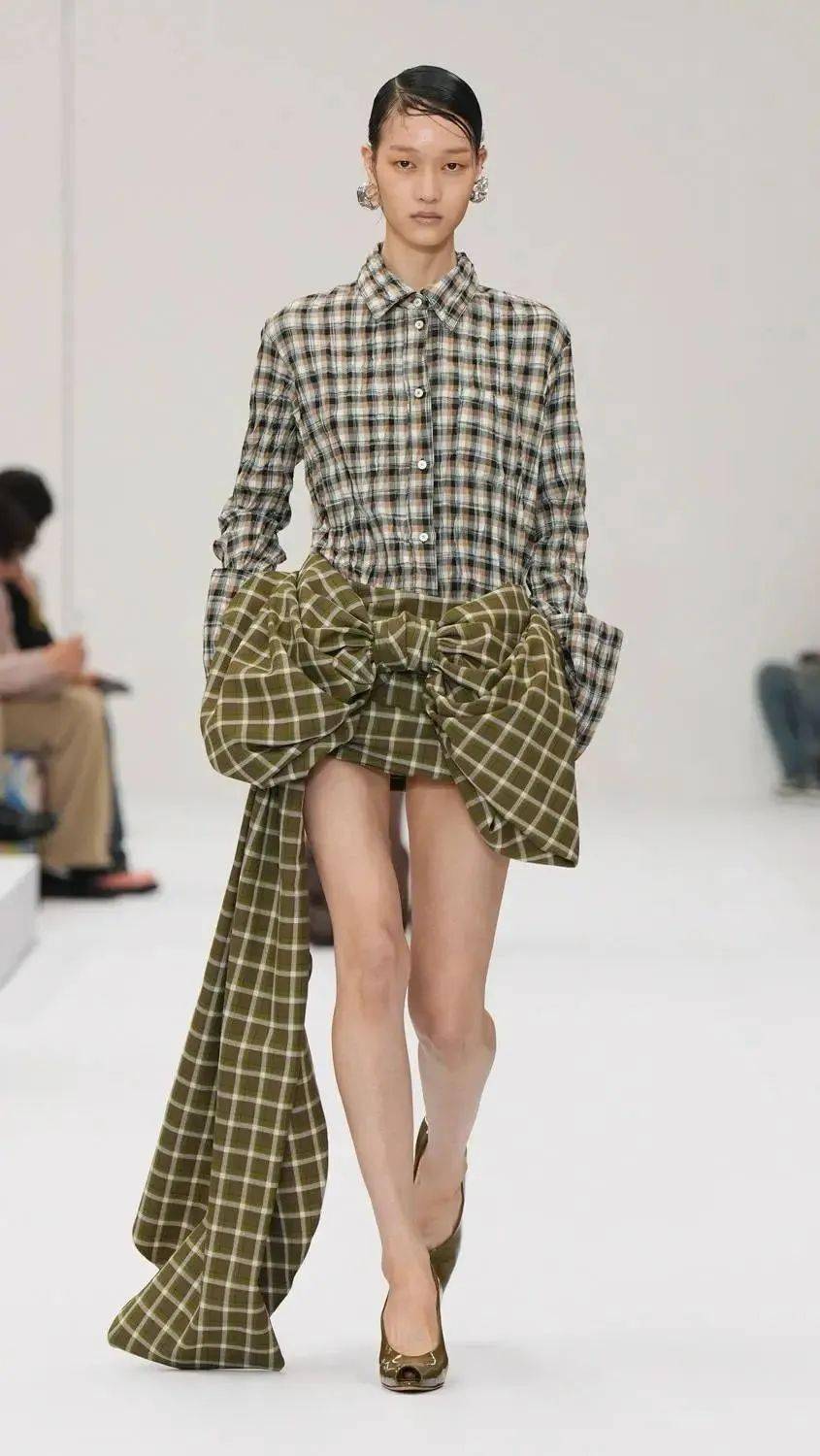 围裹且带有捆绑系扣式的设计在2025春夏系列中也有超高的出镜率,其他品牌也有不同的诠释方式,在腰间缠几道系上,或者不同部位无意识地围裹,都是一种不错的设计形式。