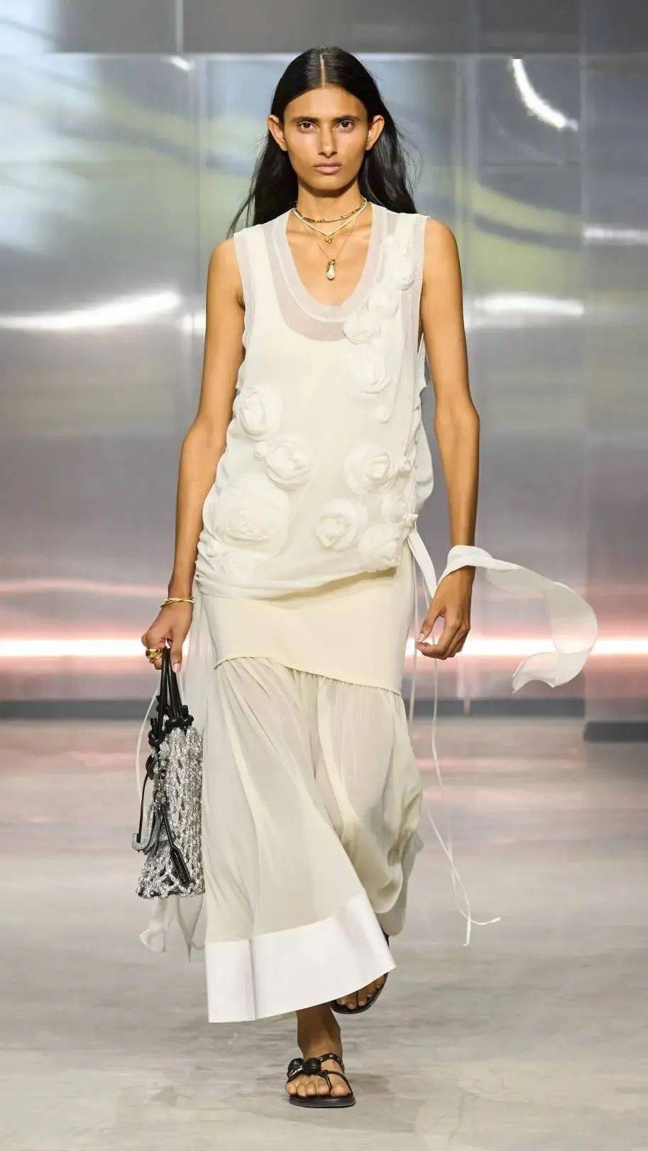 平面印花是本季的主要形式之一,立体花卉在品牌2025春夏系列设计中也占据一定比例。立体花卉与服装整体相契合,立体感强,栩栩如生。