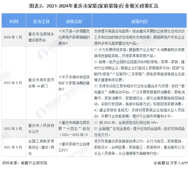 注:中国及各区域家装行业的市场规模信息均为前瞻测算。重庆市家装行业政策汇总