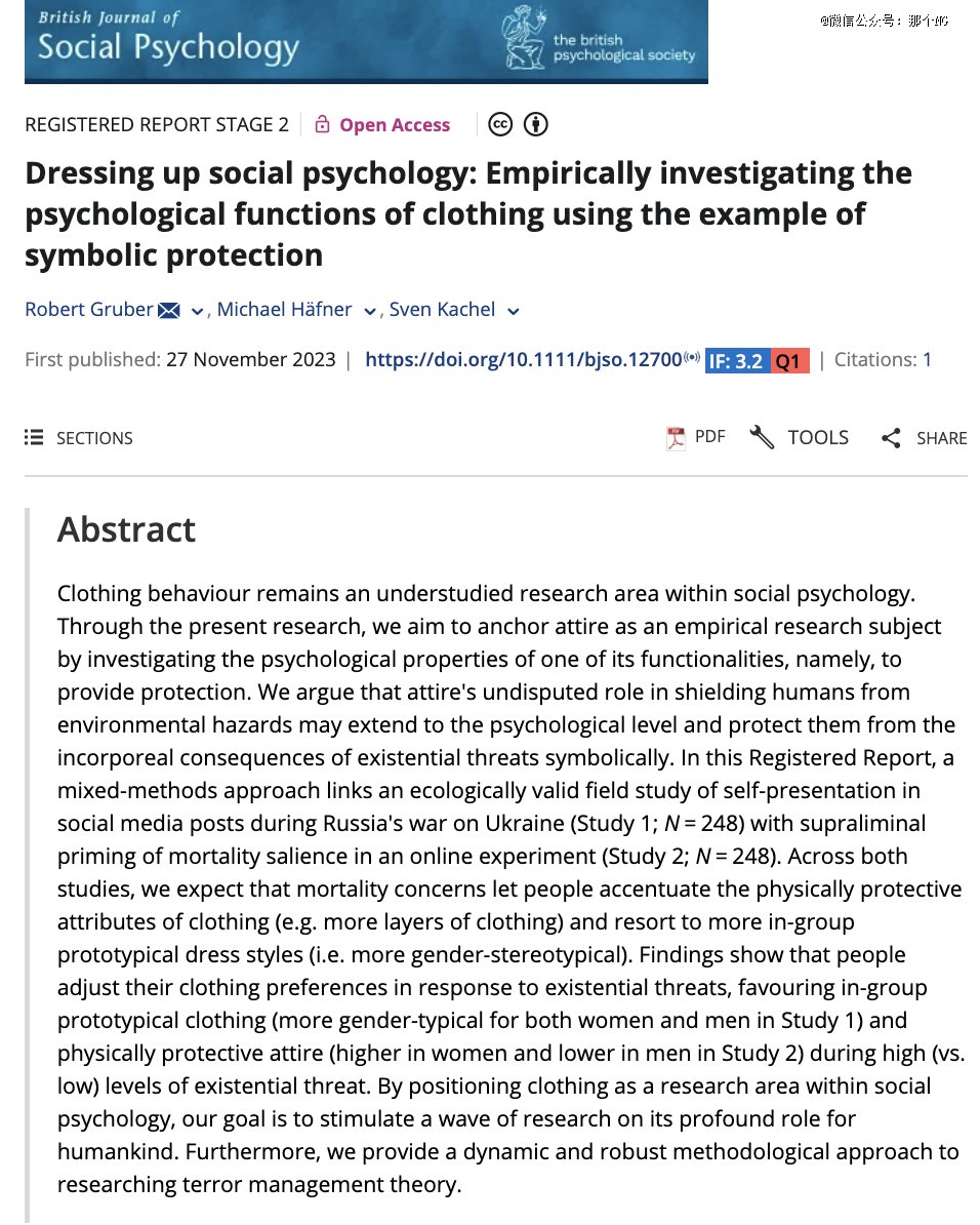 在2023年发布的《装扮与社会心理学:以象征性保护为例,实证研究服装的心理功能》论文中,作者通过调查俄乌冲突全面爆发后英国、德国和波兰的社会着装行为,服装趋势与社会心理的相关性: