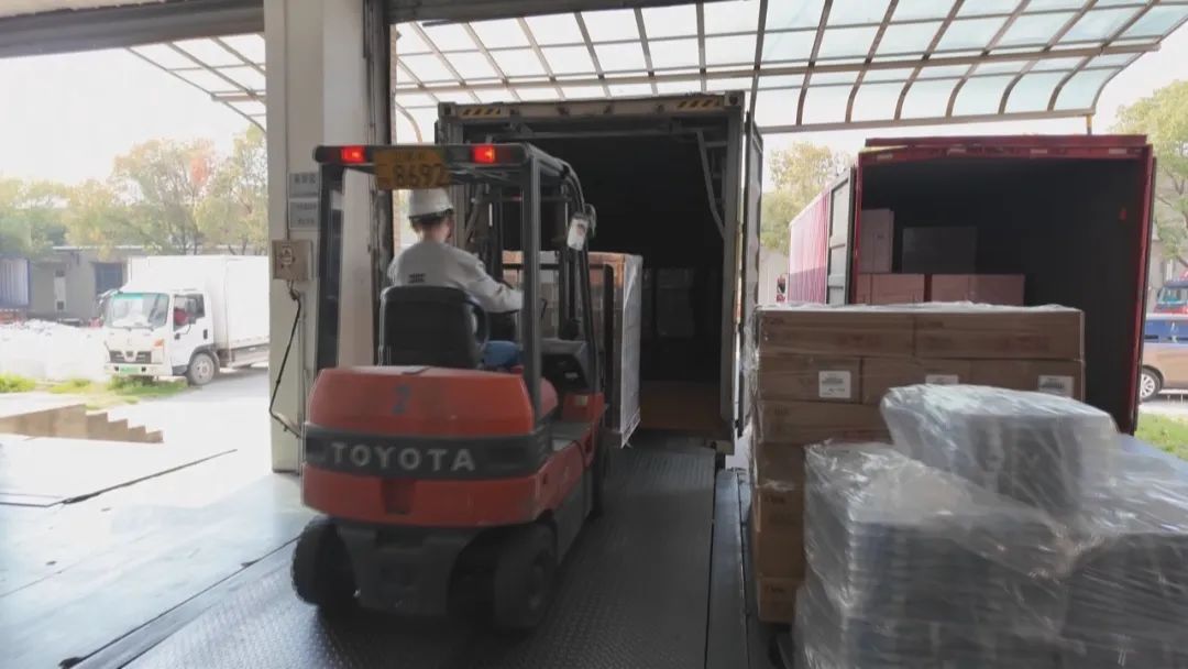 袁征 记者:这里是川奇光电的收发货区,现在在我身后,我看到工作人员正在对企业生产的电子纸模组产品进行装车发货,我了解到,这些产品将出口到美国。